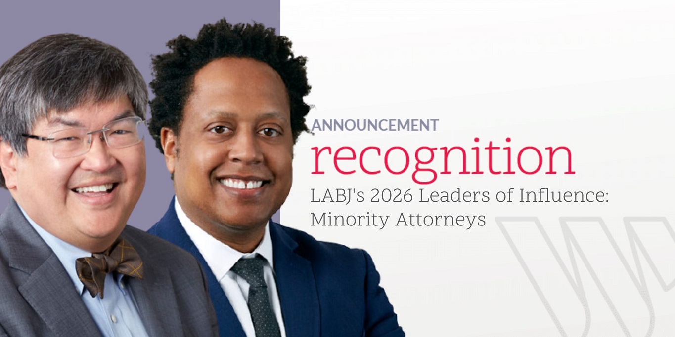Partners Kenneth Trujillo-Jamison and Jason Wilson have been selected for the Los Angeles Business Journal‘s (LABJ) 2026 Leaders of Influence: Minority Attorneys list. This annual recognition honors standout diverse attorneys in the Los Angeles region who demonstrate exceptional leadership, professional achievement, and impact within the legal and business communities.